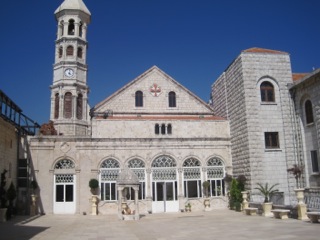 The Armenian Catholic monastery at Bzoummar is of much older provenance. Built in 1749, the convent stands at an elevation of some 3,000 feet, at the right hand side of a steep winding road leading from the Mediterranean coast up into the wilds of Mount Lebanon. Upon arrival, I stood for a few minutes admiring the uniquely Lebanese vista of green valleys and limestone cliffs visible for miles around Bzoummar, interrupted from my reverie by the appearance of my host, eighty-year old Father Antranig Granian. We spoke in French as he guided me through the monastery, pointing out elements of architectural significance and expounding on the history of the Armenian Catholic Church in Lebanon.