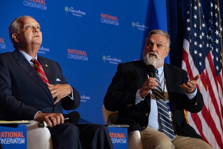 By the time Hazony asked the question, the two men had been discussing their political-theological visions for the United States for nearly an hour. Mohler responded: “I want to maximize the Christian commitments of the state. I call that ‘acknowledgment.’ I’m not claiming that every citizen will be a confessing Christian. But that does not mean they are not obligated to the acknowledgment of the Christian structure of this civilization.” In other words, one does not have to be a Christian to be part of the United States, but for Mohler they should have to acknowledge that the country is a Christian one. He continued, “I don’t think a nation can survive without theological commitments. That does not mean it cannot allow others to be a part of the community and even invite others in a certain sense into the community, but it does mean that there has to be the explicit acknowledgment that this is a nation with specific theological accountability and theological commitments.”